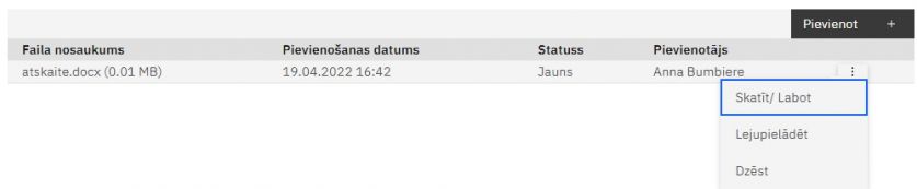 Uzklikšķini uz datums/laiks kolonnā esošās saites, lai apskatītos, kā šis fails izskatījās tad.