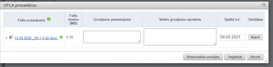 Uzklikšķini uz datums/laiks kolonnā esošās saites, lai apskatītos, kā šis fails izskatījās tad.