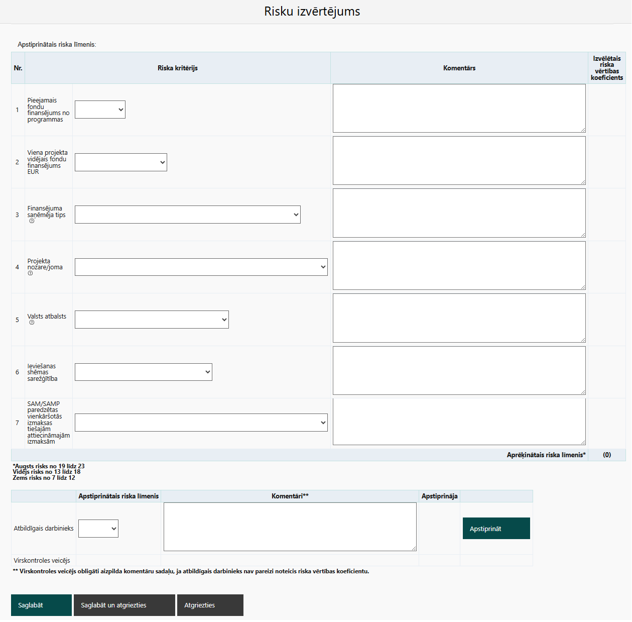 Atvērta risku izvērtējuma veidlapa