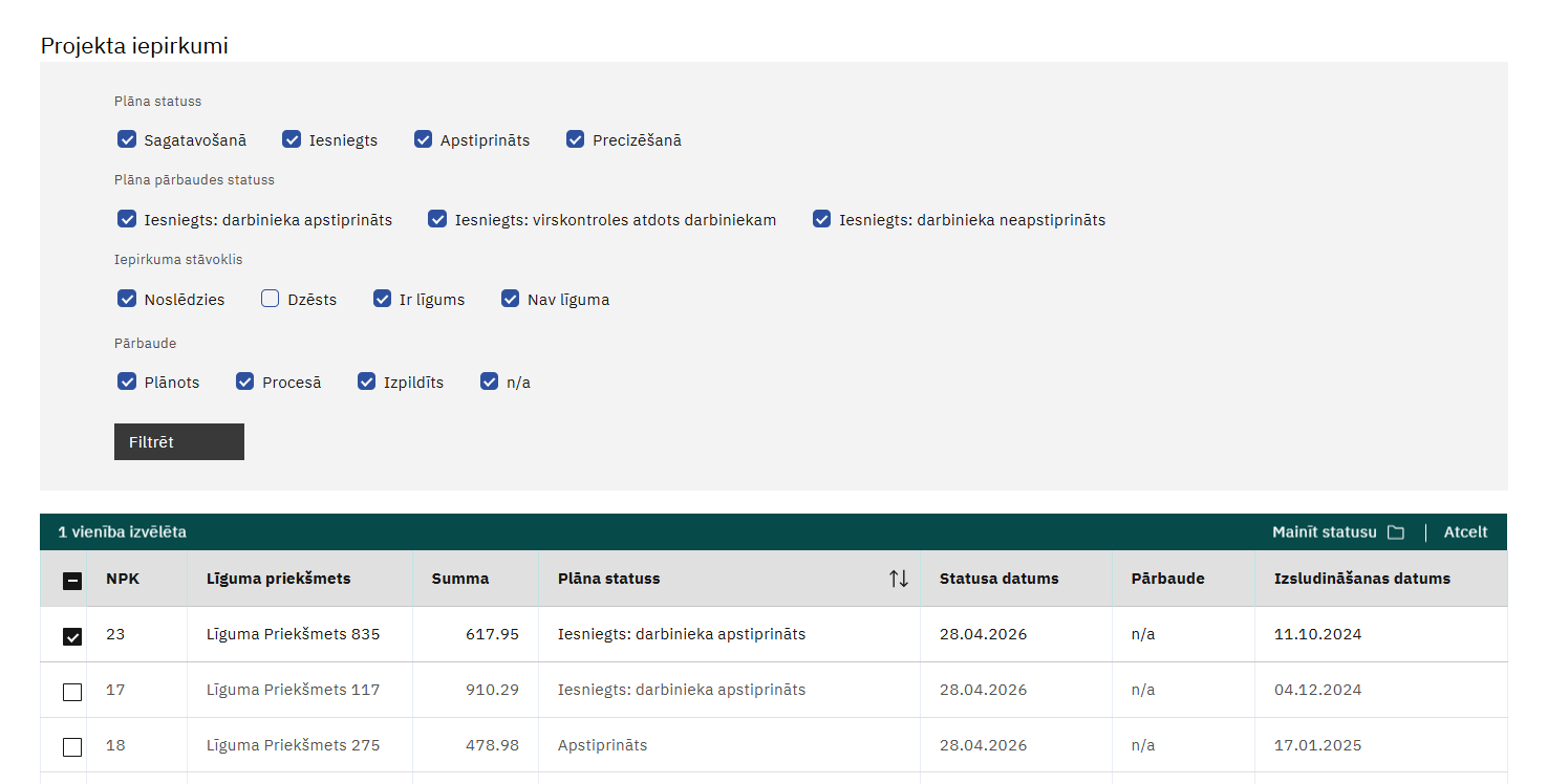 Iepirkumu priekšmetu saraksts