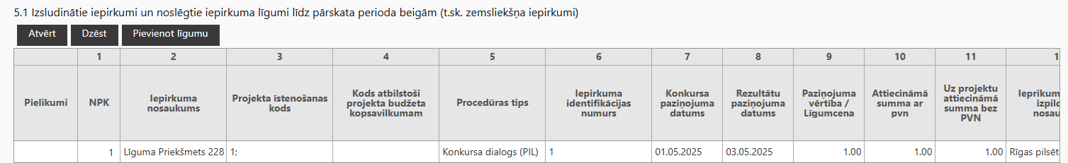 MP sadaļa Iepirkumi un līgumi (5.1)
