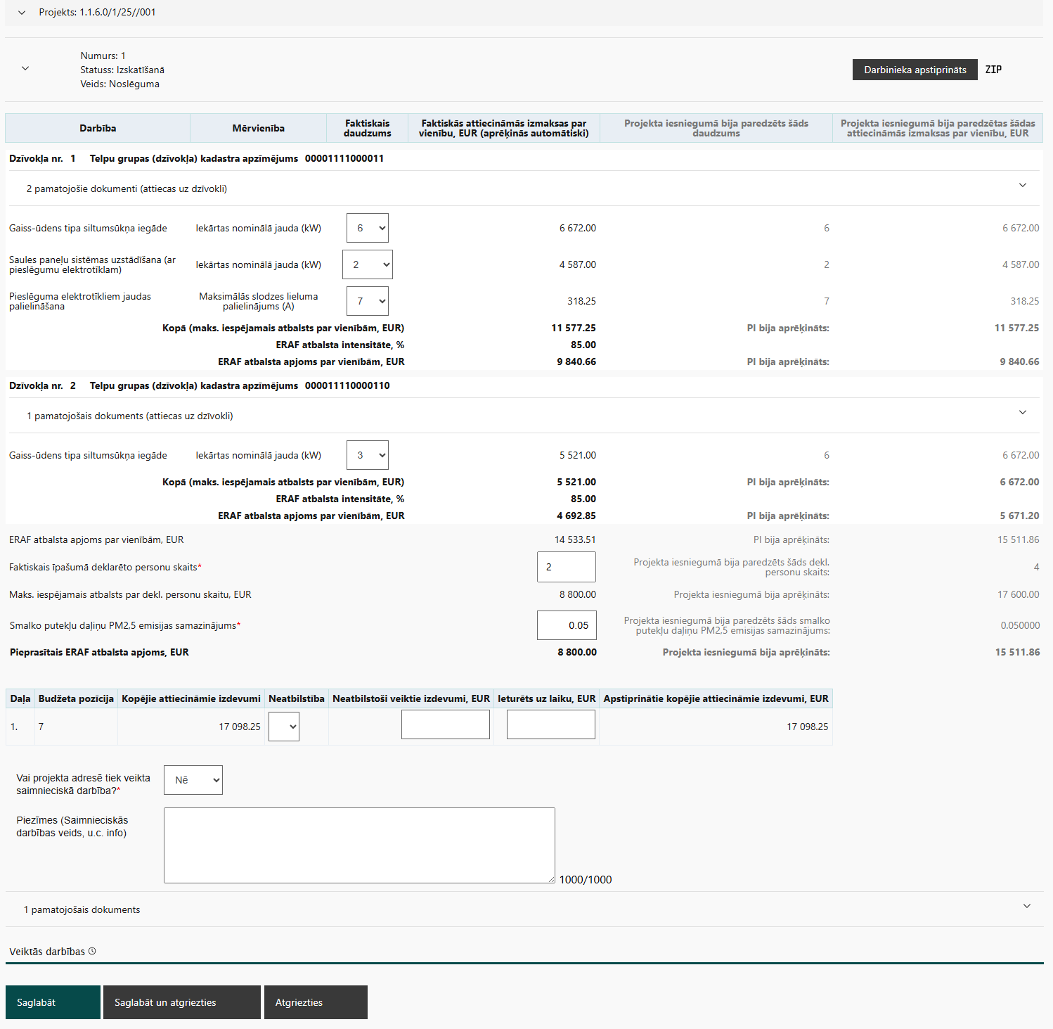 MP sadaļa Darbības un izmaksas
