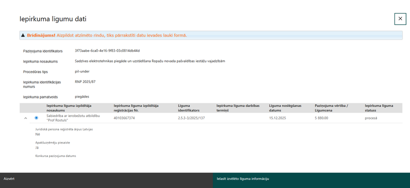 |no e-vides (FS ievadītās informācijas) automātiski aizpildīts lauks, kas satur iepirkuma līguma numuru.