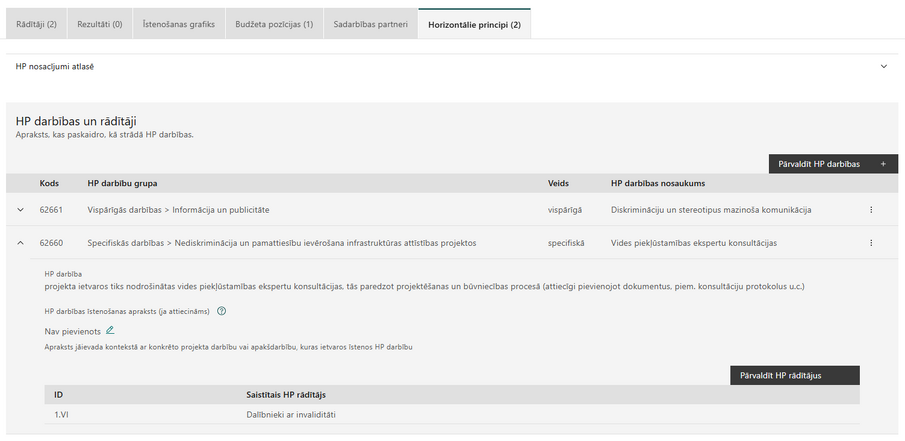 - Pārbaude vai ir pievienots definētais Minimālais nepieciešamo HP rādītāju skaits projektā;