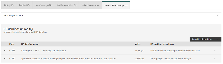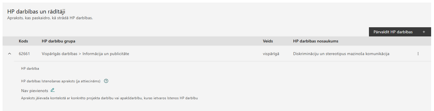 - Pārbaude vai HP rādītājam ir pievienota vismaz viena Specifiskā HP darbība.